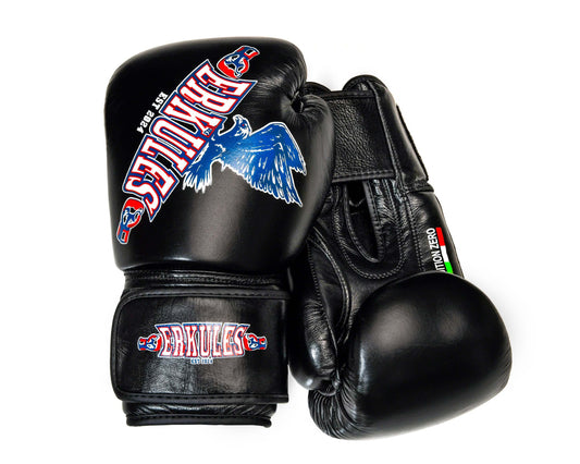 Kit da Combattimento Professionale – Guantoni Edition Zero & Conchiglia – Nero in Vera Pelle